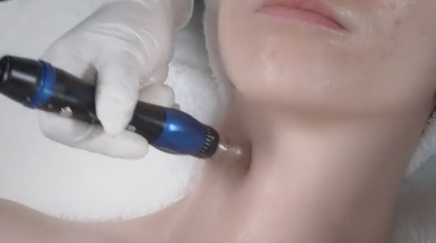 that uses an automated, vibrating stamp-like motion to cause micro injury