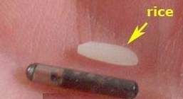 A microchip is a small capsule that is around the size of a grain of rice. It